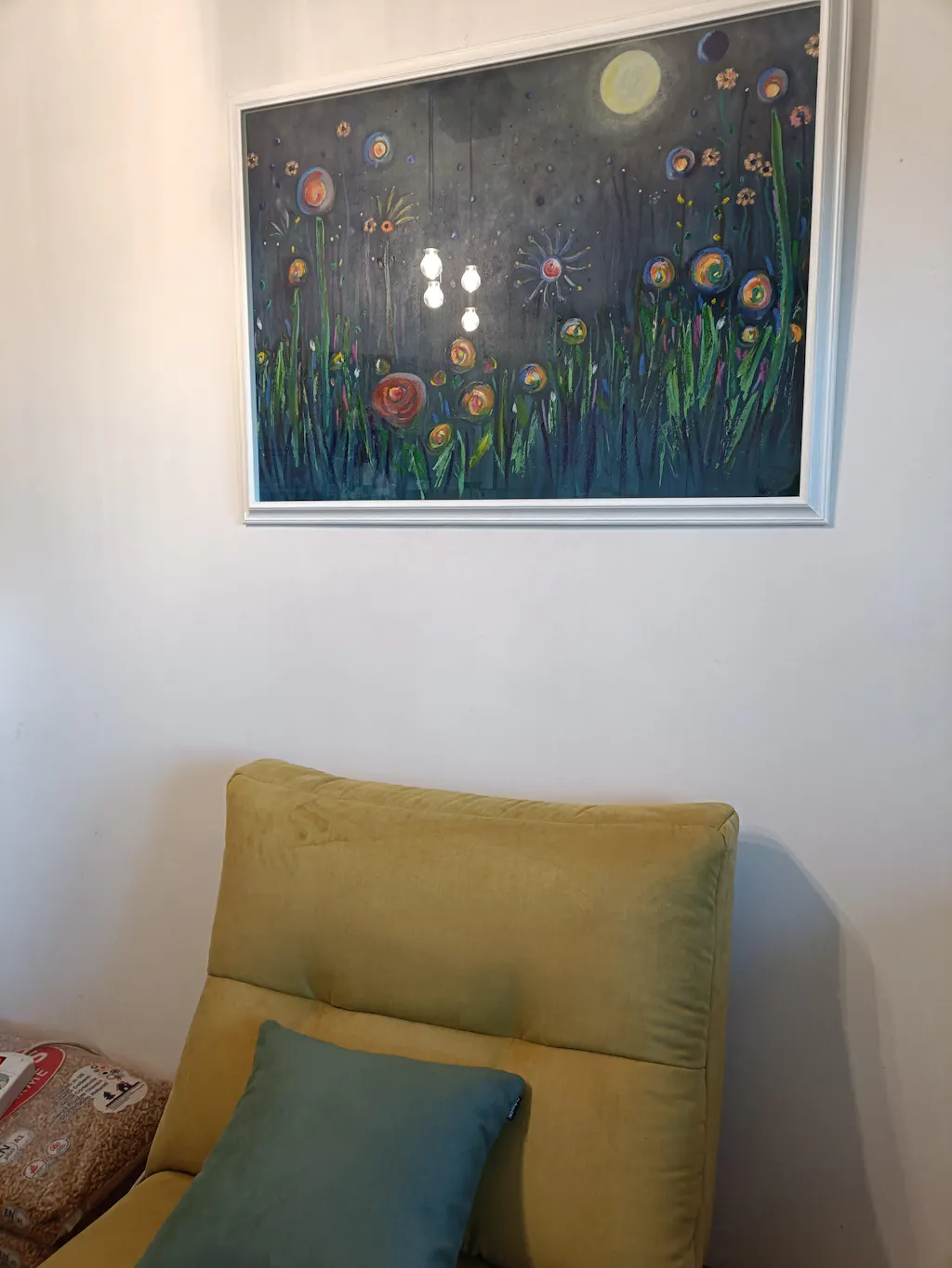 Original painting commission done in oil and oil pastel on unstretched canvas.